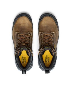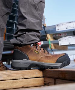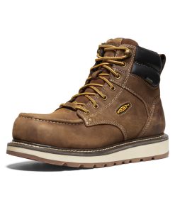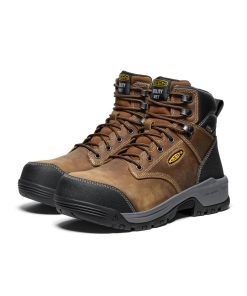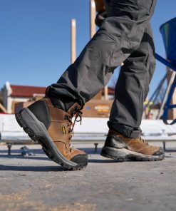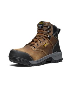 Protects like a work boot, feels like a sneaker. This men’s waterproof 6" style features a leather upper, energy-returning cushioning, and internal met protection.