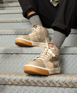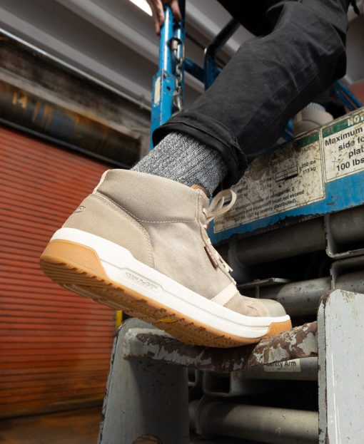 Retro-inspired mid-height work shoe reinvented with lightweight safety features, active fit, and energy-returning comfort for tasklists that don’t quit.